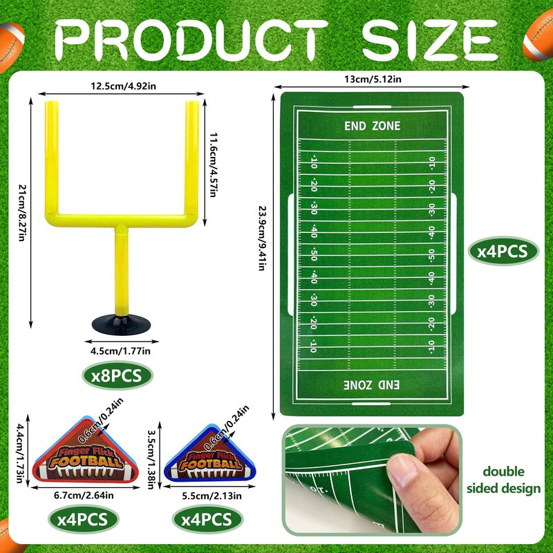 - Package Includes: indoor table football sets includes 4 sets, totally have 8 pcs goal posts, 8 pcs finger flicks foam balls,4 pcs game cards for indoor finger games; they are nice boys and girls birthday gifts, sports party favors or school ball game prizes; also great as sports party favors and sport goodie bag fillers.