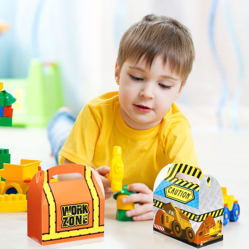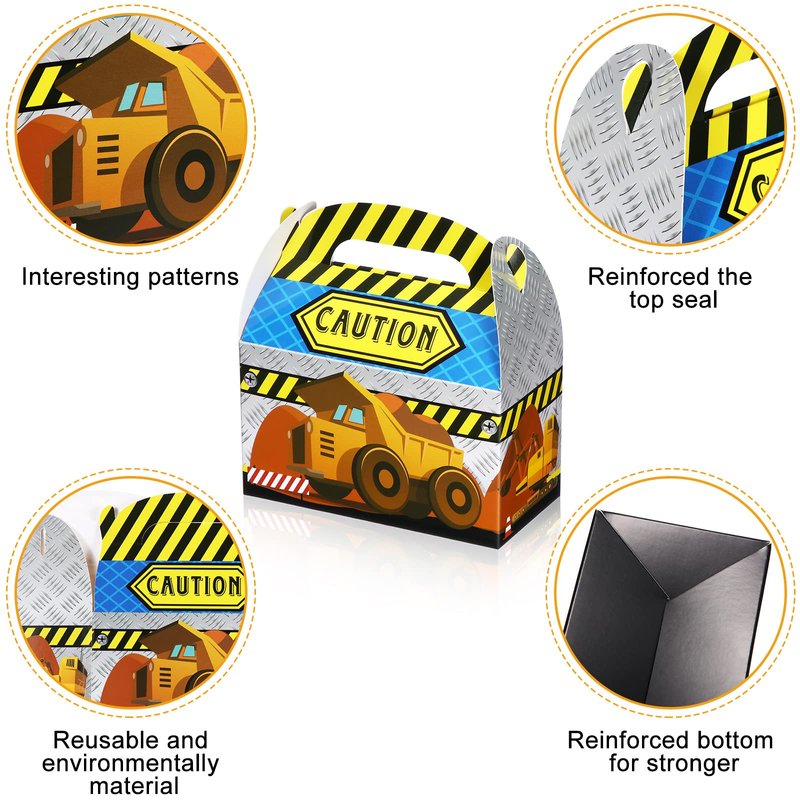 With quality material and clear printing, these construction theme gift boxes are nice party dessert wrappers.