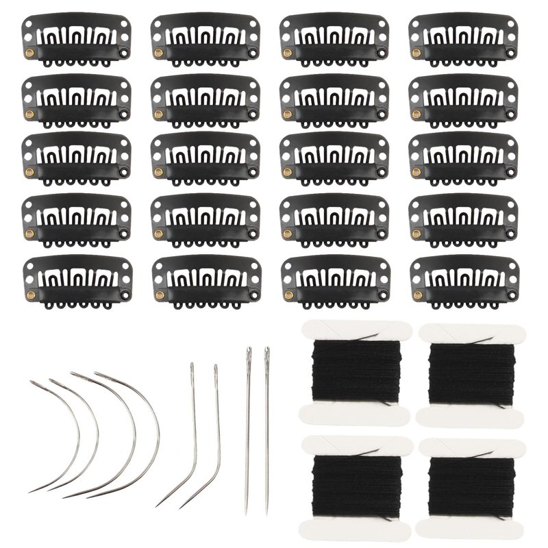 - Package Include: 20pcs black wig clips, 4 rolls sewing thread, 4pcs C curved needle, 2pcs I-shaped needle and 2pcs J-shaped needle