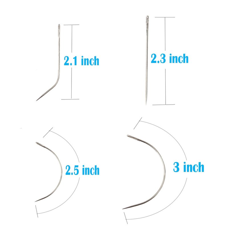 - Needle:The needle is made of nickel-plated steel. C curved needles have 2 size(2pcs for 2.5 inch and 2pcs for 3 inch), the length of I-shaped needle is 2.3 inch/6 cm, the length of J-shaped needle is 2.1 inch/5 cm