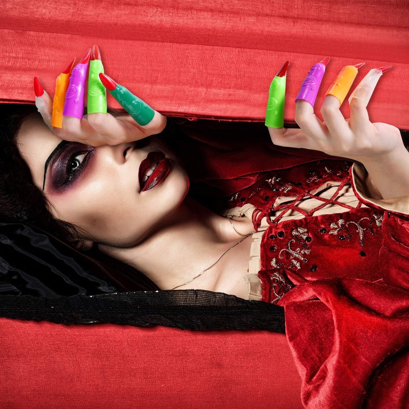 - Multicolor finger toys: the witch fingers come in 5 colors, they are transparent luminescent, purple, orange, dark green, light green with red nails, eye finger puppet color are random but colorful, which make you costume cosplay more realistic and funny, add more fun to you