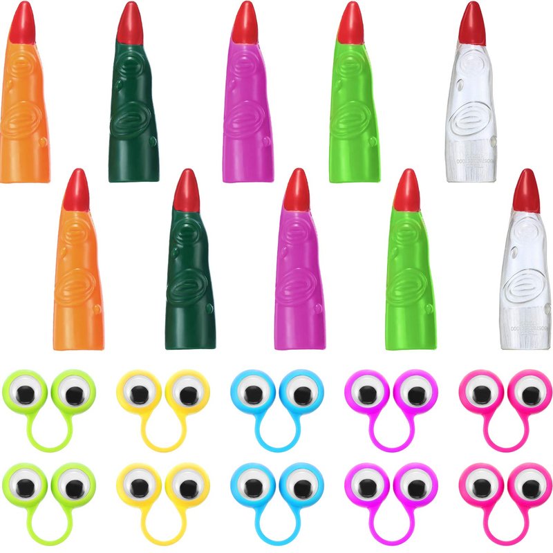 20 Pieces Halloween Accessory Includes 10 Pieces Witches Fingers Martian Costume Fingers Fake Nails Halloween Vampire Finger and 10 Pieces Eye Finger Puppets for Halloween Party Cosplay