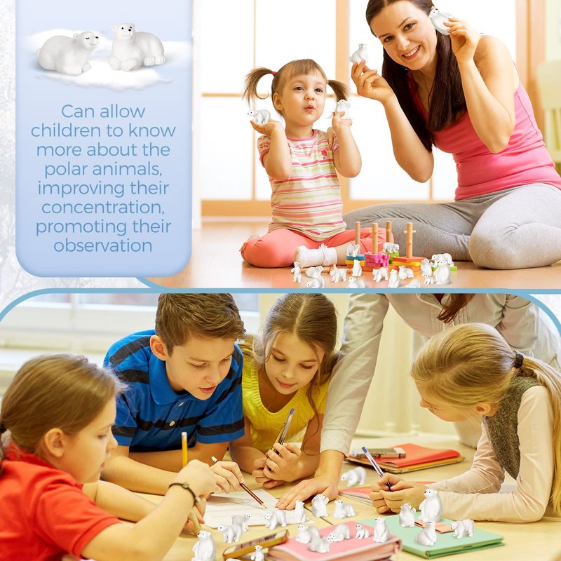 - Educational and Fun: this polar bear figurines set is also an ideal educational prop, allowing boys and girls to learn and explore the mysteries of sea and arctic animals in a simple and fun way, which helps improve and train their concentration, insight, imagination, and creativity