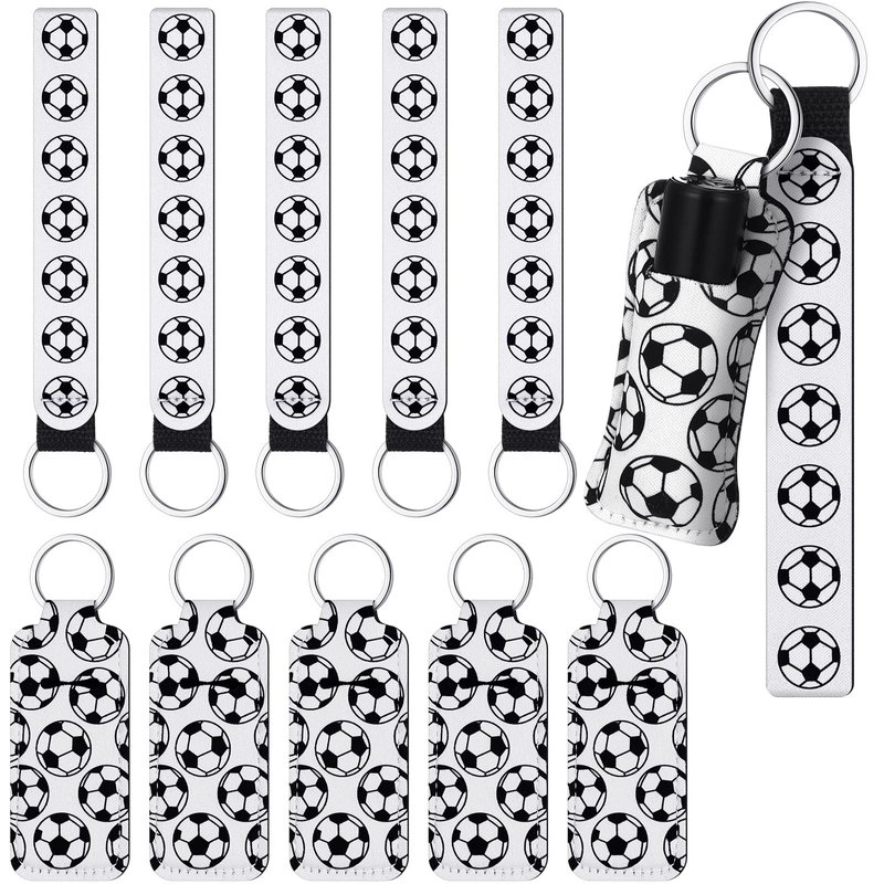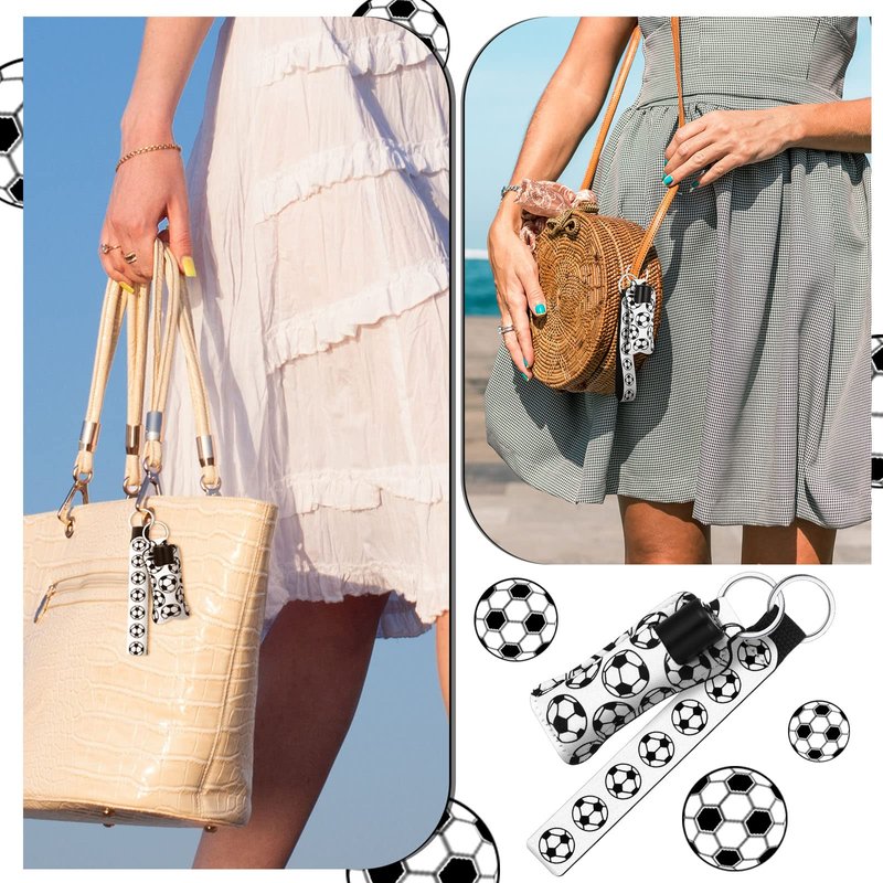 20 Pieces Soccer lipstick Holder Keychains Lanyard Sets Include Lipstick Holder Keychains Soccer Portable Lipstick Holder and Wristlet Keychain Lanyard for Team lipstick (White, Soccer)