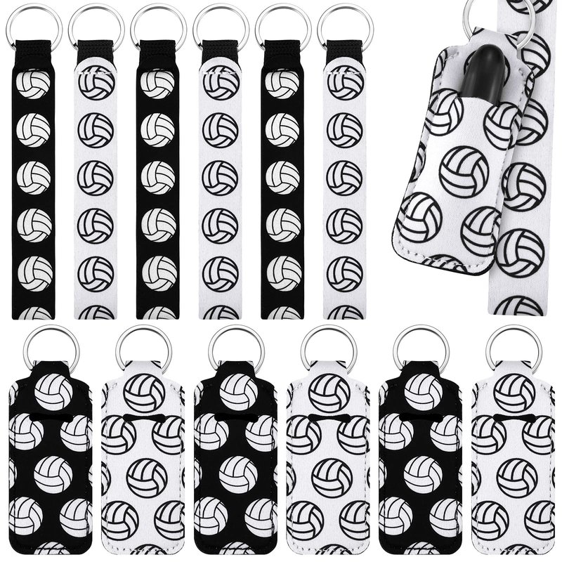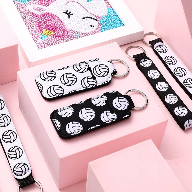 20 Pieces Volleyball lipstick Holder Keychains Lanyard Set Volleyball Gifts for team Volleyball Portable Wristlet Keychain Lanyard for lipstick (White, Black, Volleyball)