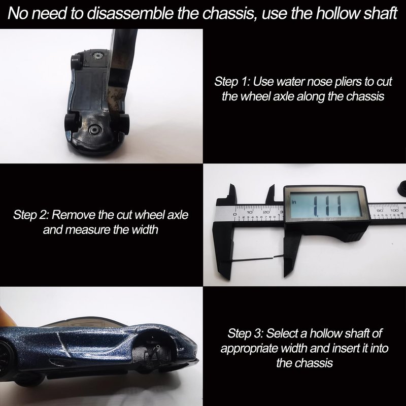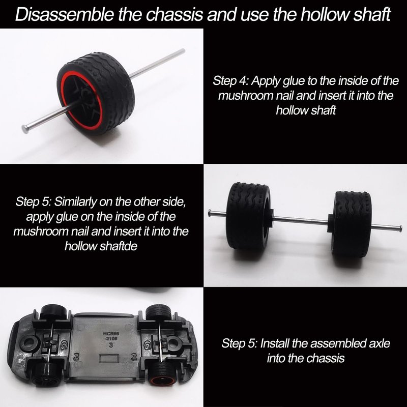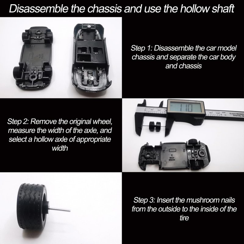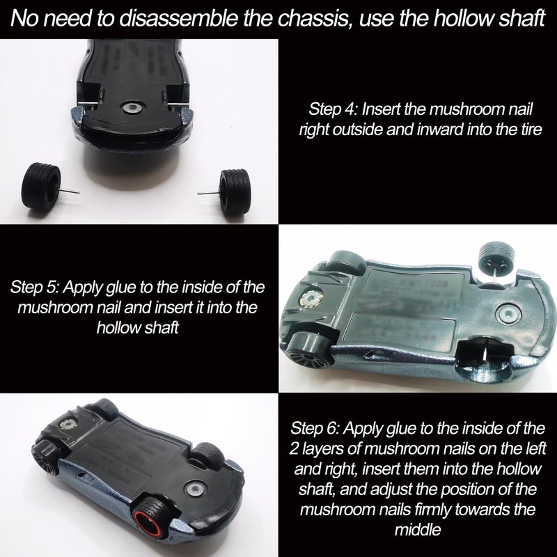 - ➤Easy to Use - By using this 1/64 Wheels Modified Hollow Shaft and Mushroom Nails, you can easily change the tires on your car model without drilling out the body rivets or disassembling the car chassis