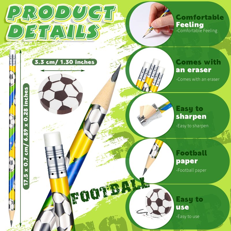 - Awards for Kids: the wooden pencils for kids and school eraser for kid share the soccer theme, classic and cool, with clear soccer prints, they will be loved by many students; You can give them to your kids as rewards, to show your appreciation and support