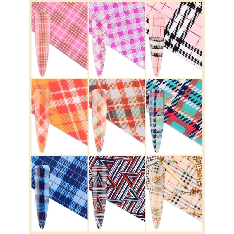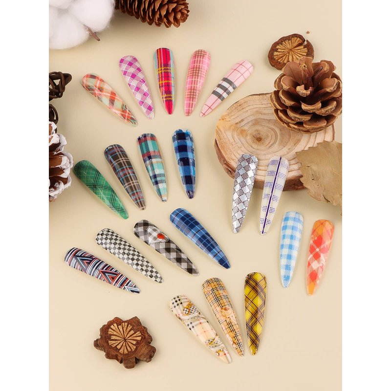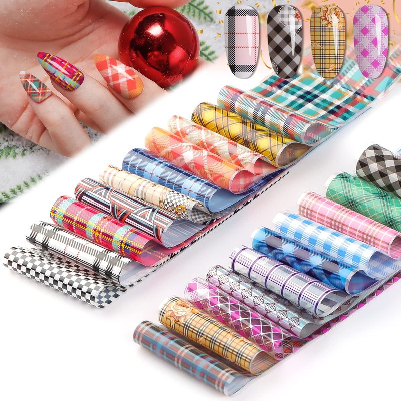 - Plaid Design: 20 rolls of fashionable and beautiful Gingham nail stickers. Different checkered with classic buffalo plaid, and combines the design of laser, to satisfies all your fantasies about plaid nail art.