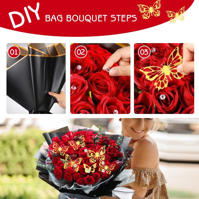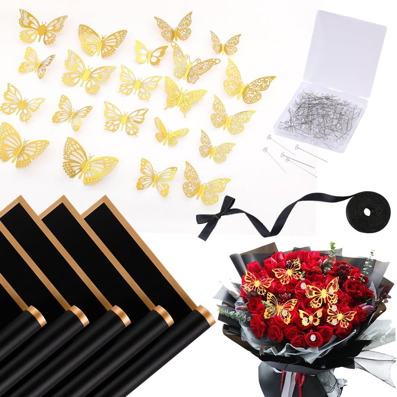 - Flower Wrapping Paper Combination:The package include 20 sheets flower wrapping bouquet paper,48pcs 3D gold butterfly decor,100 pearl pins and 12.5 yards ribbon,the combination can sufficient to meet your decoration demands