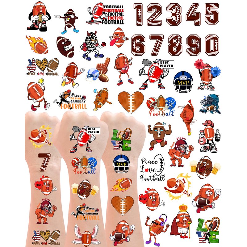 - Funny Football party decorations Package includes 180 pieces of Football themed temporary tattoos, which can be used wherever you want, such as arms, face, and hands