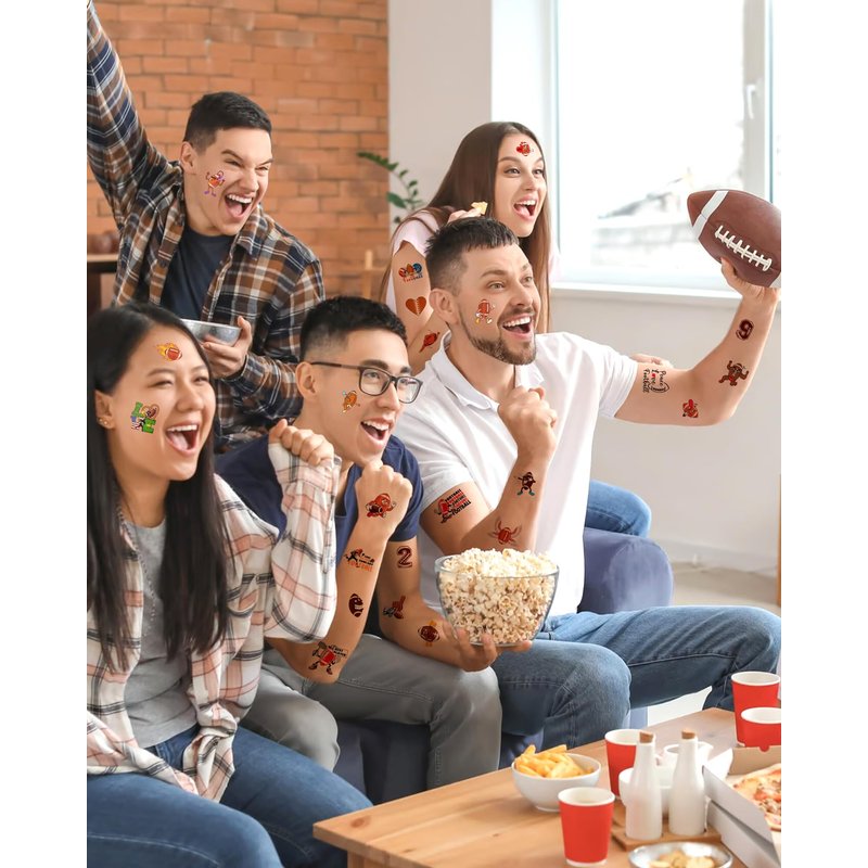 - Friendly to Skin Football party decorations,our temporary tattoos have been put through rigorous party testing and are 100% guaranteed to last all day,Non-toxic, harmless and tasteless, the tattoos do not cause irritation