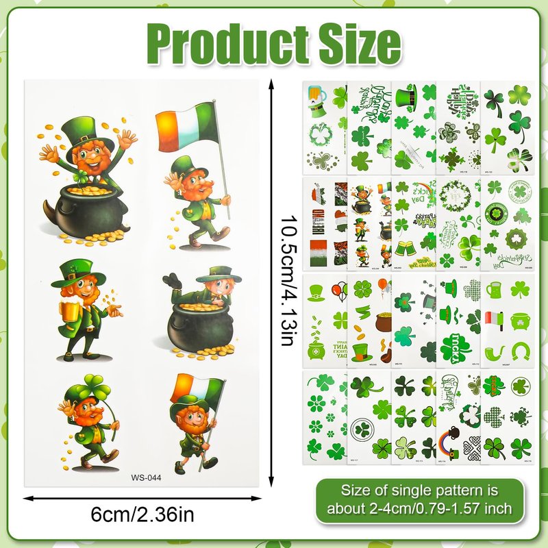 - Package Content: You will receive 20 sheets of St. Patrick's Day tattoos, which are desiged with speical and creative patterns and can match with your St. Patrick's Day decorations.