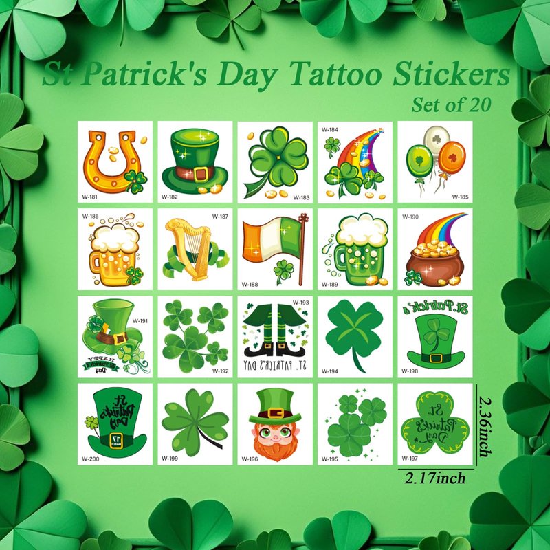 - 🍀St Patricks Day Tattoos Set: You will get 20 sheets St Patricks Day tattoos stickers. size 2.36 x 2.17inch, enough quantities to satisfy your daily needs; Sharing them with your family members is also a good idea.