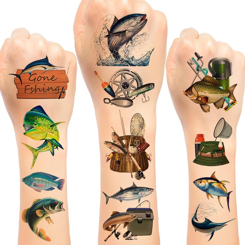 - 【Cute and Vivid Gone Fishing】: These gone fishin temporary tattoos features an assortment of fishing elements, such as fish jumping out of the water and realistic patterns of fishing nets, hooks, fish, fisherman hats. Adorable and eye catching, can serve well as a party decor ; The bright colors and exterior can easily attract people's attention.