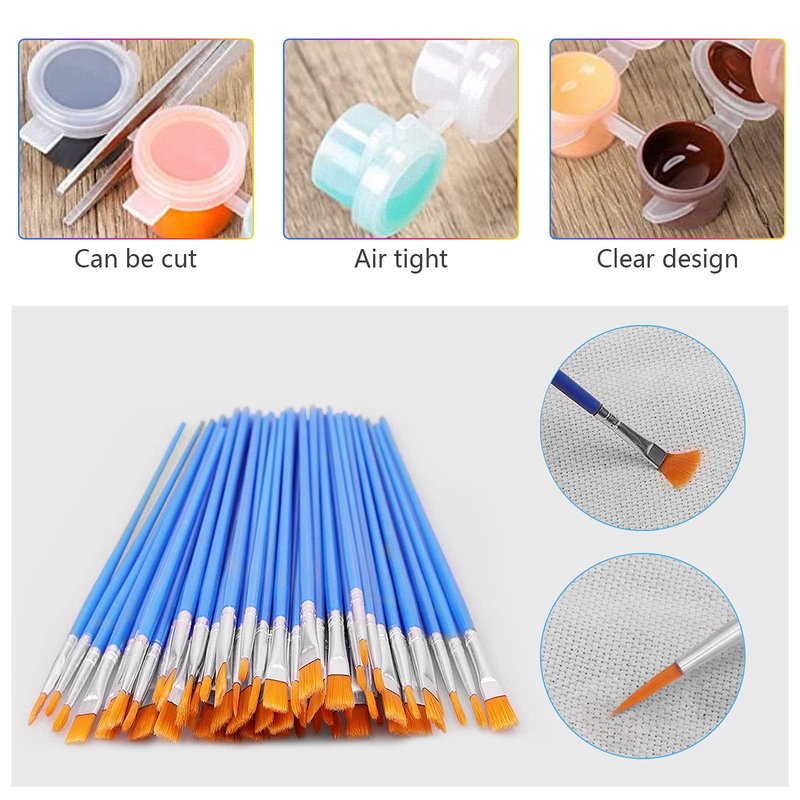- NICE SEALING&LIGHTWEIGHT: Each clear storage containers is equipped with a lid, which can be tightly closed, just open and close it carefully in each use, so as to ensure a nice sealing.Each pot is about 3 ml/ 0.1 ounces in capacity.Paint brushes are great for children to use because they are lightweight with plastic handles,and the plastic handles won't chip or crack like painted wood handles, safe&long-lasting,brushes total length about 165mm / 6.5 inches.