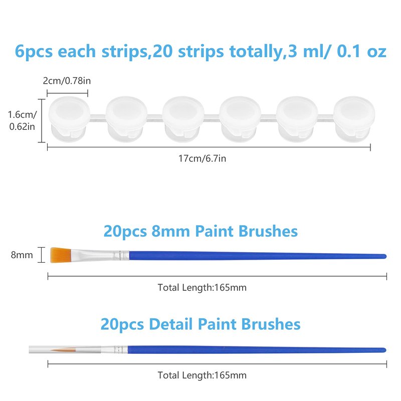 - GREAT VALUE PACKAGE FOR KIDS:You will get 20 strips of empty paint cup pots in this package,6 pots for each strip,20 pieces paint brushes and 20 pieces detail paint brushes,totally 120 pots and 40 paint brushes at a very economical price with extremely high performance-to-price ratio.