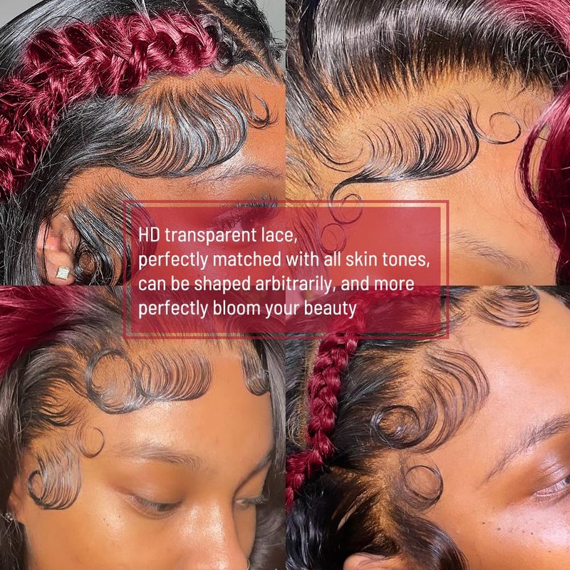- ❤Lace Front Wigs Human HairAdvantage:Burgundy Lace Front Wigs Human Hair 360 Hd Transparent Lace Front Wigs Human Hair, Simulated Scalp,Fits The Scalp More Perfectly And Naturally, Breathable&Durable, Glueless Wigs And The Lace Area Is Large, So You Can Do Many Hairstyles.