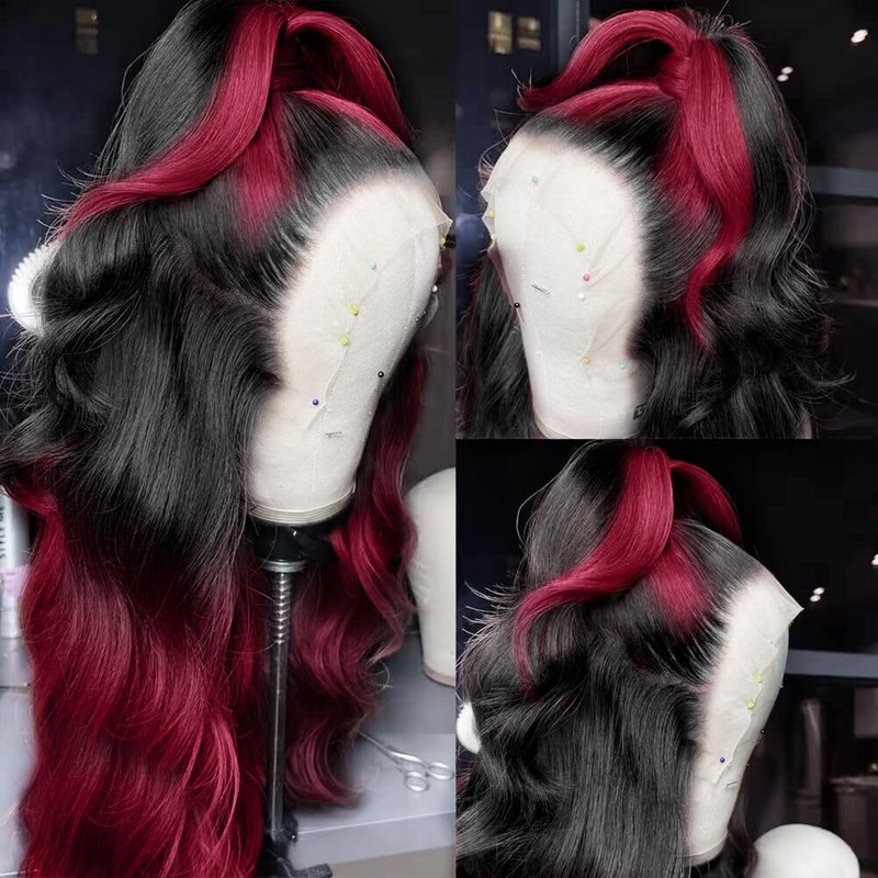 - ❤360 Lace front wigs Human Hair Material:Burgundy 360 Body Wave Lace Front Wigs Human Hair,100% Unprocessed Human Hair,Completely Donated By Young Girls,Refused To Collect From The Floor,Soft And Tangle-Free, Lasting Durability, Clean And Smooth, Can Be Straightened, Curled And All Style You Want To Be.