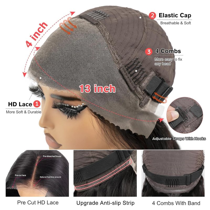 - 【Wear and Go Glueless 13x4 Lace Wig】Ear to Ear Lace, Lightly Bleached Knots, Pre plucked with baby hair around, Offer You Very Natural Hairline Than Closure wig. With the Natural Hairline Could do Beautiful Baby hair.