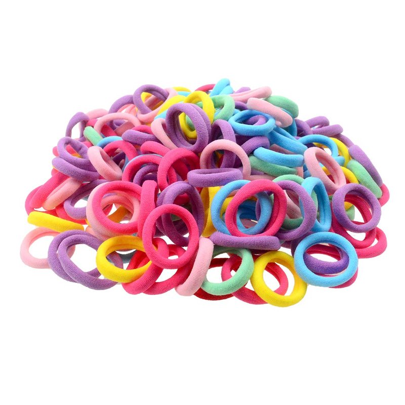 Package: 200 pcs hair ties Small size around 3cm in diameter with good elasticty, suitable for toddlers to hold hair ponytail.