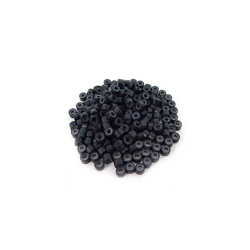 200 PCS 4.5mm Small Silicone Lined Micro Rings Links Beads Linkies For I Bonded Tip Stick Glue Hair Extensions - Color Black