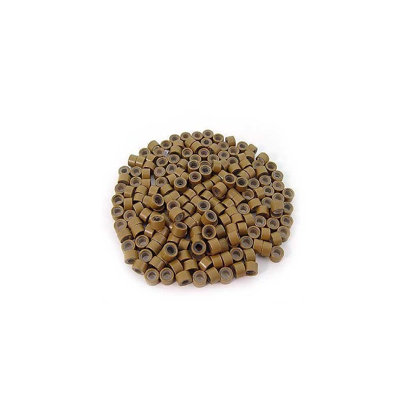 200 PCS 4.5mm Small Silicone Lined Micro Rings Links Beads Linkies For I Bonded Tip Stick Glue Hair Extensions - Color Light Brown