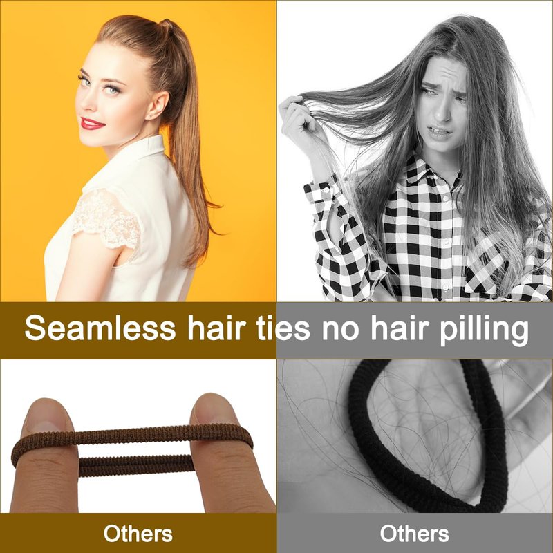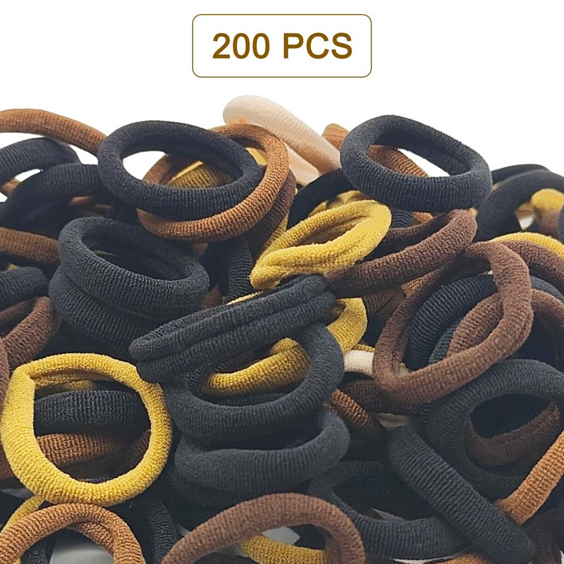 200 pcs Hair Ties, DaKuan Hair Ties No Damage, Hair Scrunchies, Seamless Towel Ring, No Crease Ponytail Holders, Suitable for Long Hair, Medium-Length Hair Decoration, Fixed (Black and Brown)
