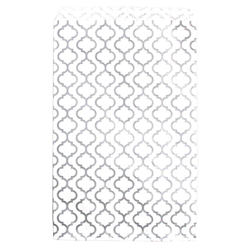 200 pcs Shimmering Silver Trellis Pattern Paper Merchandise Gift Bags Shopping Sales Tote Bags 6"x9" - Caddy Bay Collection