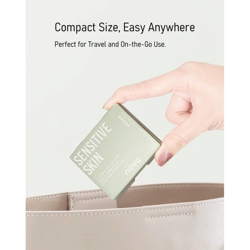 Our lightweight, stylish packaging fits easily in your pocket or backpack. The set includes a compact mirror and puff for quick touch-ups anytime, anywhere. The reusable design reduces waste—just refill the box with supplementary sheets.