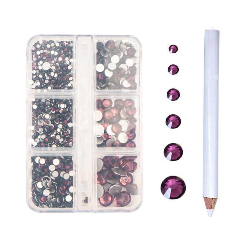 2000Pcs Dark Purple Flatback Rhinestones for Nail Art,Mix 6 Size Flat Back Glass Rhinestone Half Round Crystals Rhinestones for Craft DIY with Picking Pen,SS4-SS30