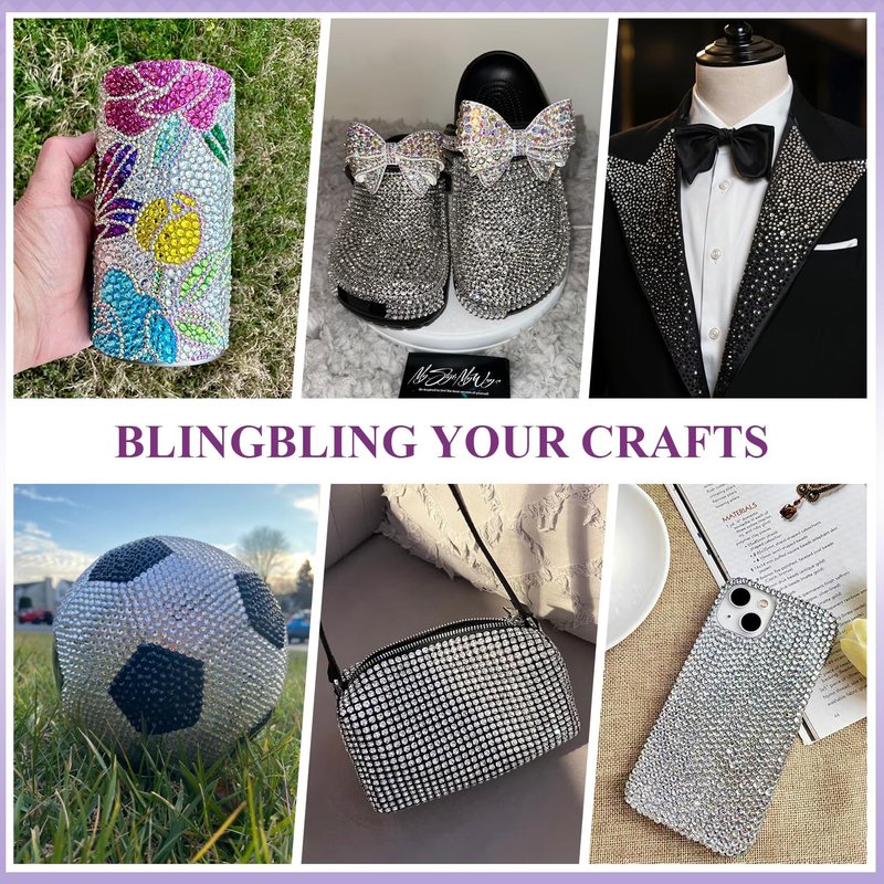 - 💎WIDE APPLICATION -- The iridescent and bedazzling gems will remarkably add glitz to your DIY crafts, like shoes, sneakers, high heels, tumblers, mugs, goblets, bottles, clothes, dresses, jeans, hats, masks, glasses, phone cases, popsockets, scrapbooks, diamond paintings, greeting cards, bags, guitars, keychains, hair clips, etc. You can use them for face makeup, eye makeup, body art, 3D nail art as well. Apply it to whatever you want to bedazzle!