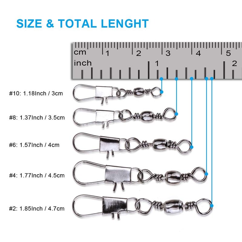 - 5. PACKAGE: Total 200pcs fishing swivels connectors in a reusable plastic box, included #2( 20PCS) #4(30PCS) #6(30PCS) #8( 60PCS) #10(60PCS), This is an excellent collection of barrel swivels of an excellent price.