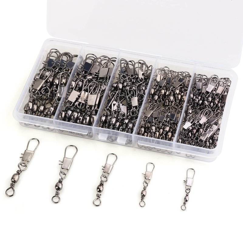 200PCS Barrel Snap Swivel Fishing Accessories, Premium Fishing Gear Equipment with Ball Bearing Swivels Snaps Connector for Quick Connect Fishing Lures