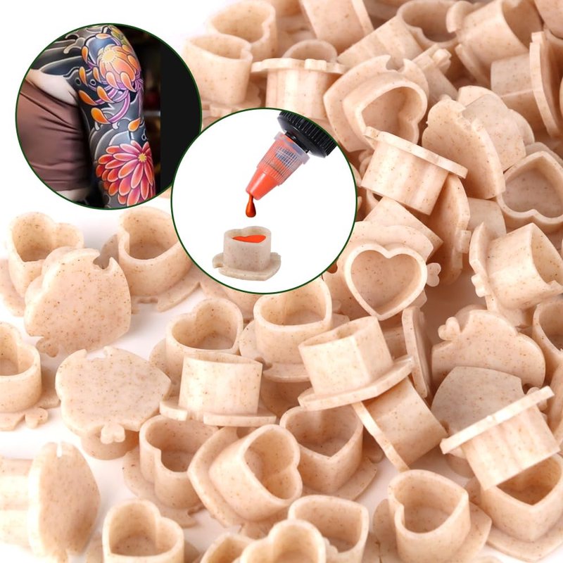 200pcs Biodegradable Tattoo Ink Cups Heart Shaped Base ECO-Friendly Disposable Spliced Pigment Caps Tattoo Accessories