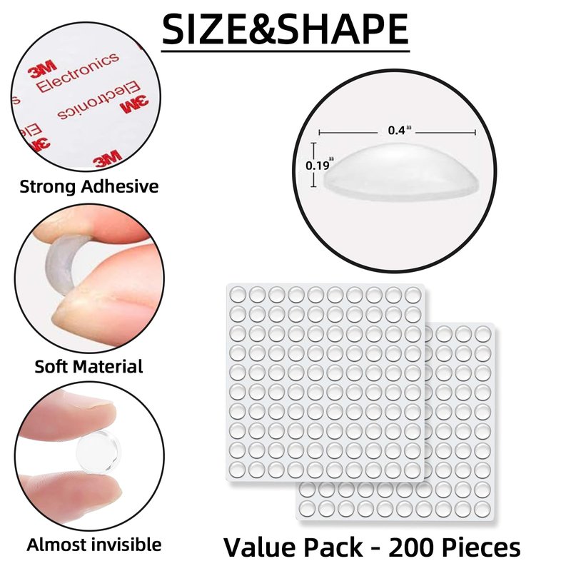 - Pack of 200: Each set includes 200 clear cabinet bumpers.