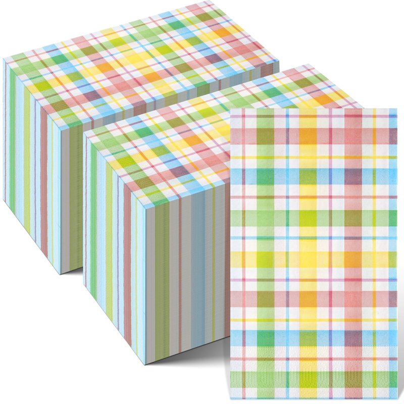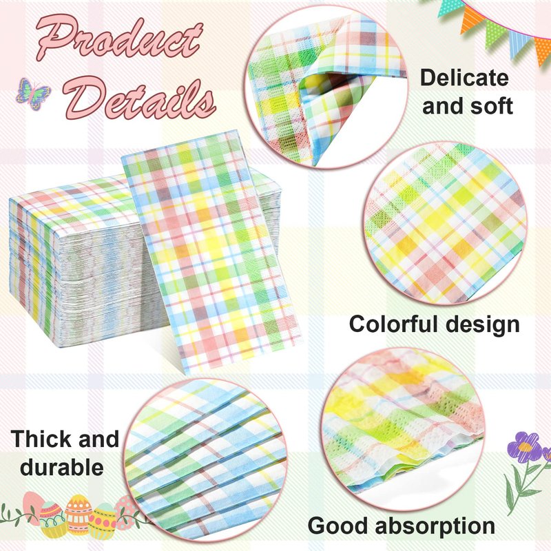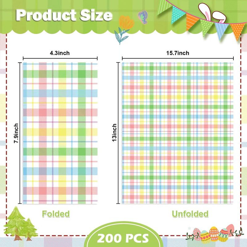 - Spring Guest Napkins: you will get 200 pieces of watercolor Easter buffalo plaid checkered disposable napkins in a bag,measuring 7.9x4.3inch folded and 15.7x13inch unfolded.These napkins will definitely decorate your dinner table and impress your guests.