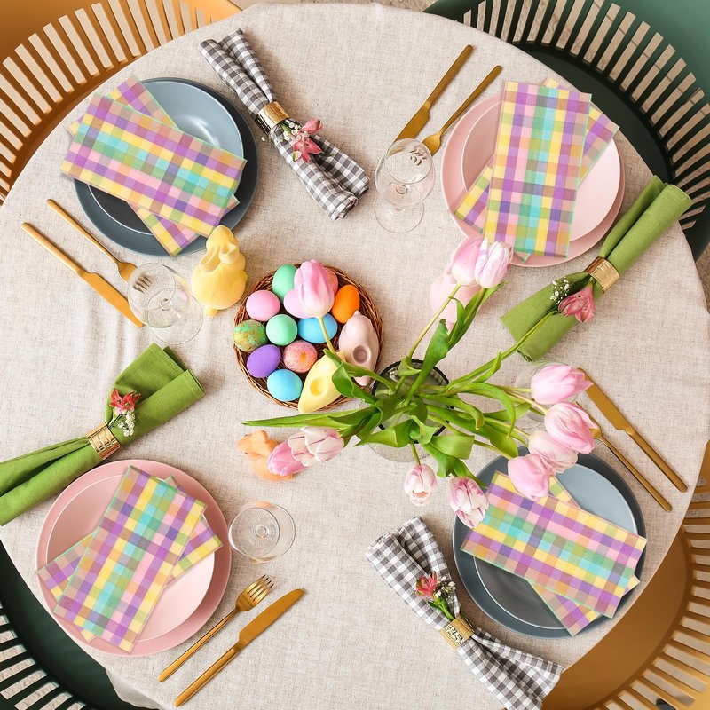 - Disposable and Convenient: our Easter buffalo plaid dinner napkins are disposable for use. It’s convenience to save your time by eliminating the need to wash fabric napkins and it make your party clean and hygienic.Then you can enjoy the party with your friends and family.