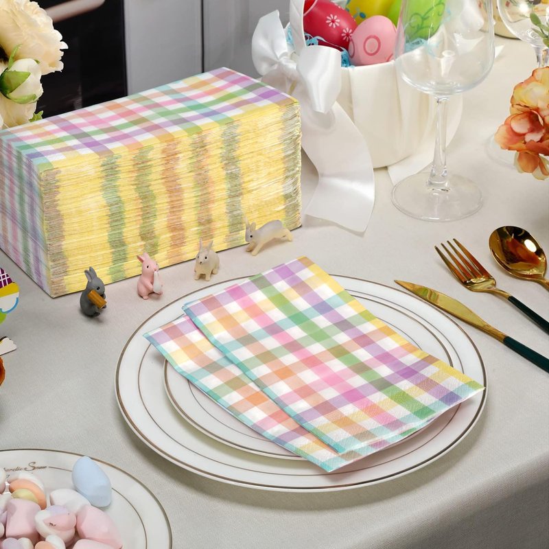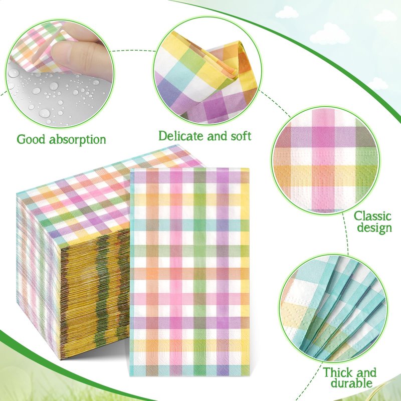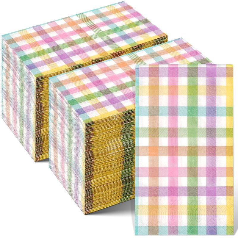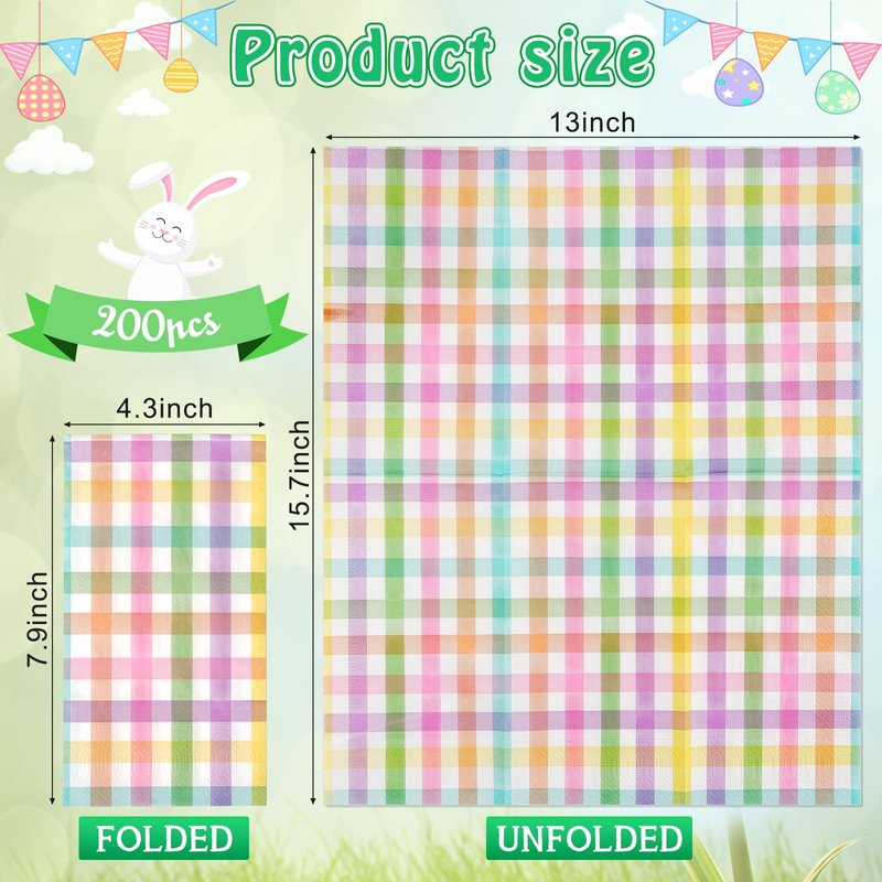 - Spring Guest Napkins: you will get 200 pieces of pastel Easter buffalo plaid checkered disposable napkins in a bag,measuring 7.9x4.3inch folded and 15.7x13inch unfolded.These napkins will definitely decorate your dinner table and impress your guests.