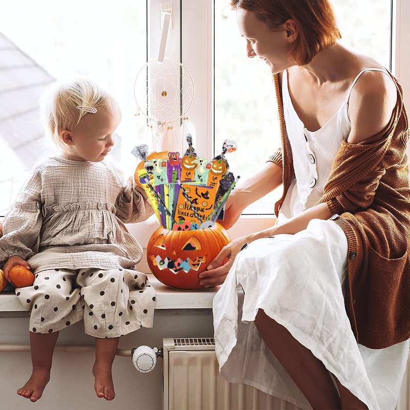 30PCS Halloween Treat Bags - Halloween cellophane bags for packing the stationery, then use the twist ties included to tie the gift bags easily.