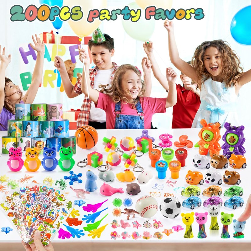 - KIDS PARTY FAVORS BULK: Total 200pcs of bulk party favors, a very decent gift bags for kids party favors. Each of children will be very excited and enjoy playing these little toys for a long time. Perfect for birthday party favors, Easter egg fillers, Christmas, and other holiday
