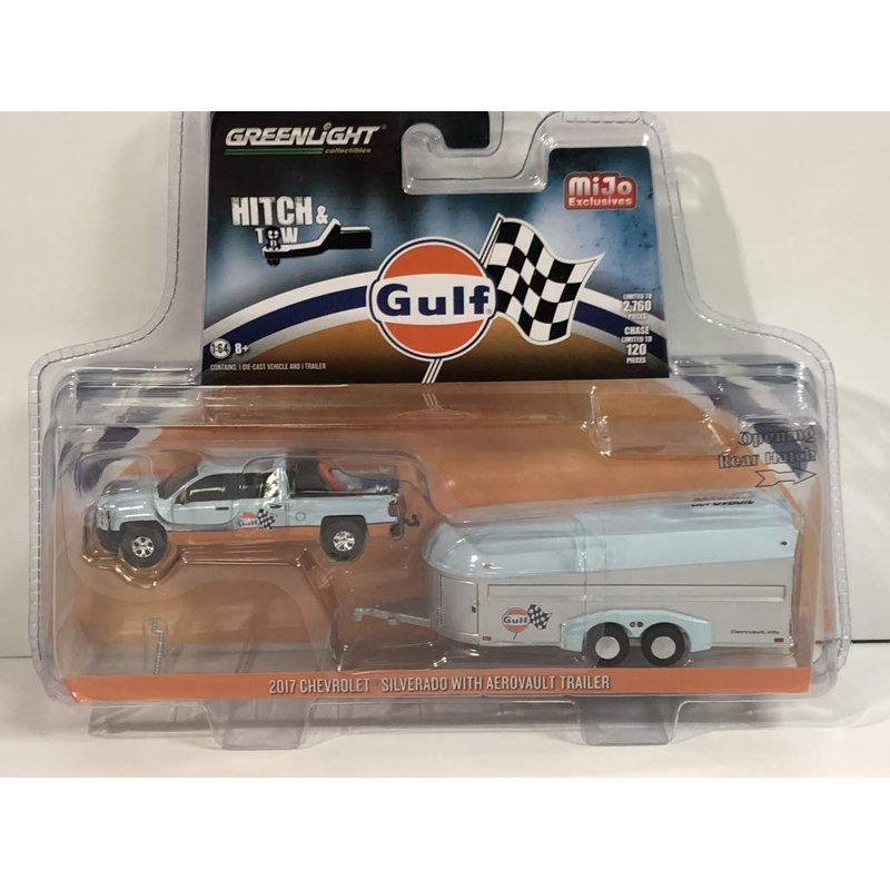 2017 Chevrolet Silverado Pickup Truck & Aerovault Trailer Gulf Oil Hitch & Tow Limited Edition to 2760 Pieces 1/64 Diecast Car by Greenlight 51243