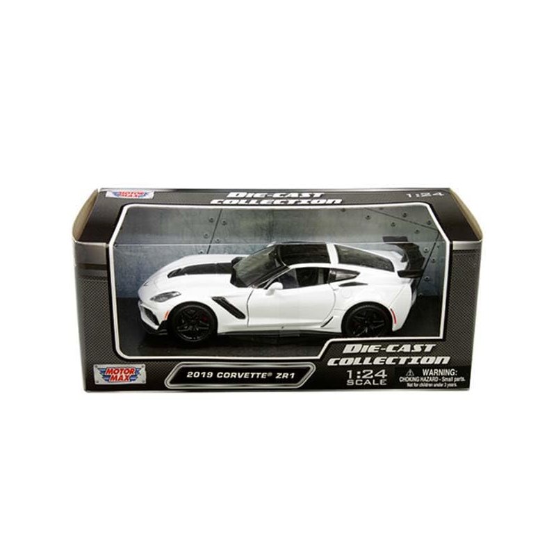 Brand new 1/24 scale diecast car model of 2019 Chevy Corvette ZR1 White with Black Accents die cast model car by Motormax 79356white