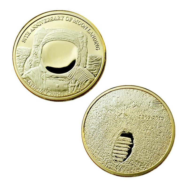 - This commemorative coin engraves the image of the astronauts on the moon, which is clear and textured. This is an ideal gift for your friends or those who like to collect.