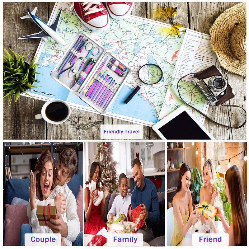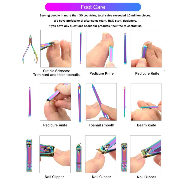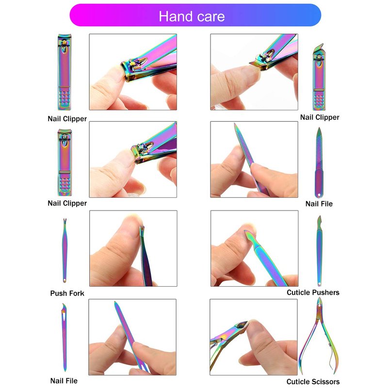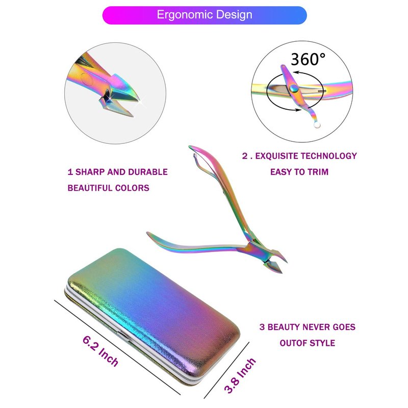 This rainbow manicure kits including high quality nail clippers, cuticle pusher, cuticle nipper and other usefully accessories.