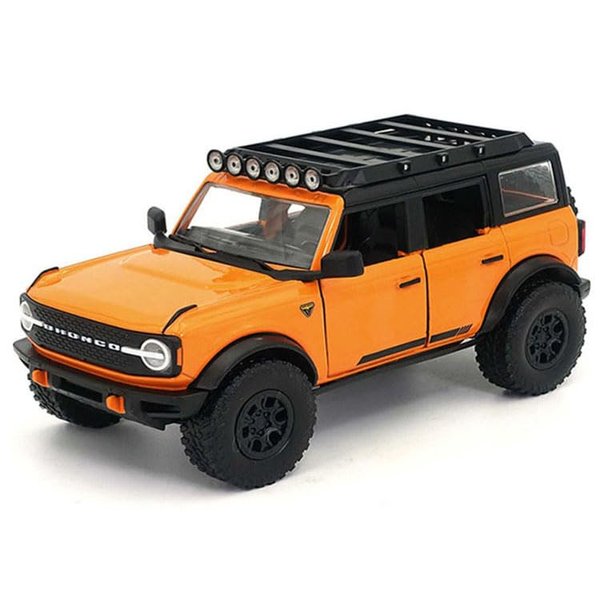 Brand new 1/24 scale diecast car model of 2021 Bronco Orange with Black Stripes and Roof Rack "Just Trucks" Series die cast model car by Jada 34289