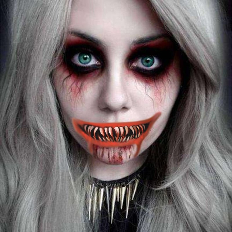2022 New Halloween Prank Makeup Temporary Tattoo Adults Kids 10PCS,Clown Horror Mouth Fake Tattoos Stickers Scary Big Mouth Face Tattoos Decals Kits Prank Props Waterproof Masquerade Cosplay Party