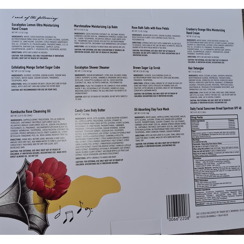 2022 Trader Joe's 12 days Of Beauty Advent Calendar plus 2 Vibrant Glamour Single Face Masks included