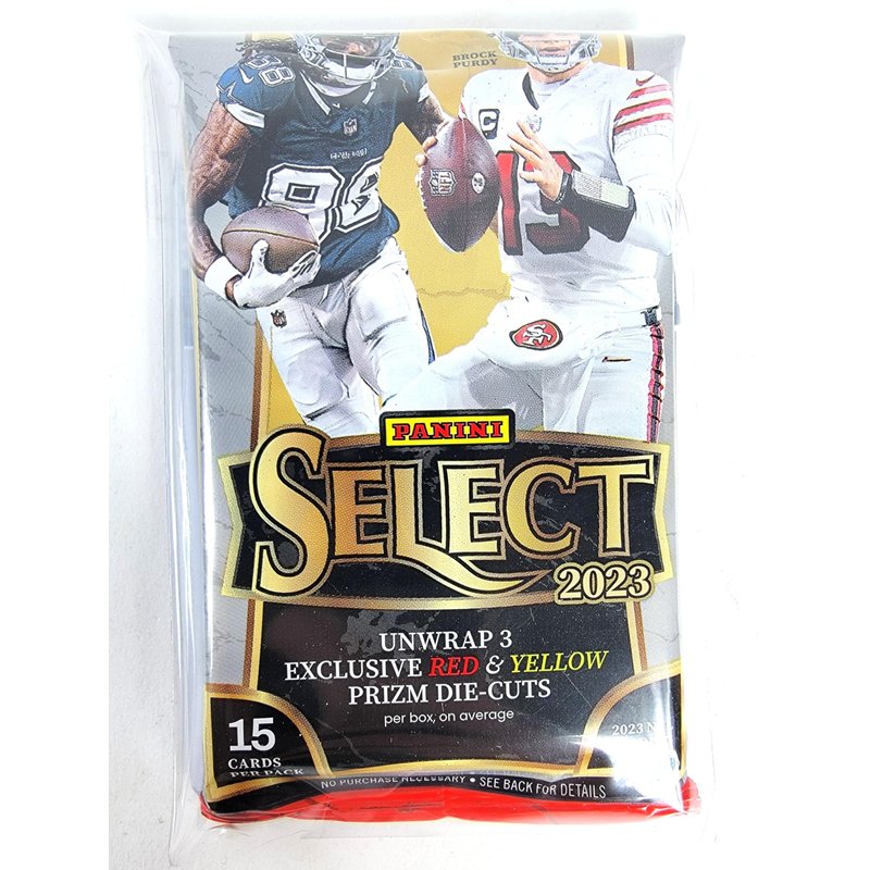 2023 Panini Select Football NFL Jumbo Cello Value Pack with 15 Trading Cards + Toploader! Hunt for Fat Pack Exclusive Red & Yellow Prizm Die-Cuts! Look for one autograph and one Zebra Prizm Die-Cut (1 in 12 chance, on average)! The scintillating Select Football franchise returns for the 2023 season with a three-tiered set that grows increasingly more rare with each tier. Also find a fantastic insert lineup that magnificently blends today and yesterday. Includes FREE toploader!