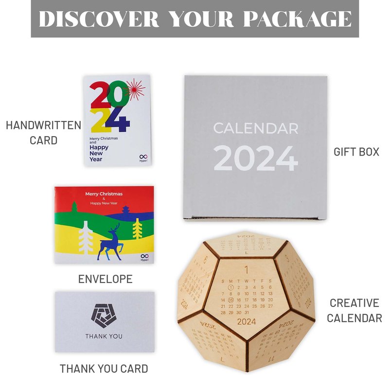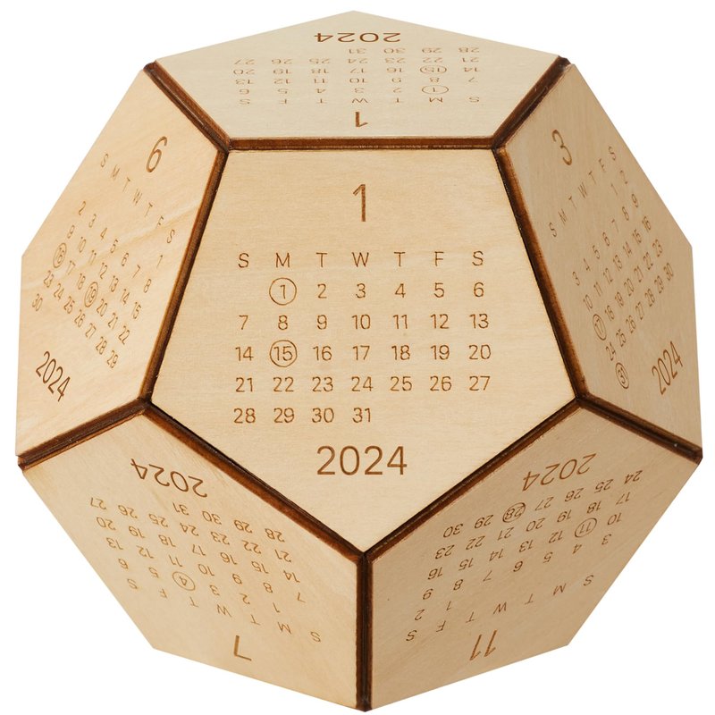 - NOVELTY DESK ACCESSORIES: This one-of-a-kind wooden hexagon shaped desk calendar 2024 was created to stand out from the crowd of calendar options. The precise name for this novel geometry is a dodecahedron. The wood calendar itself has 12 sides for the entire year, and the covers are made entirely of natural wood.