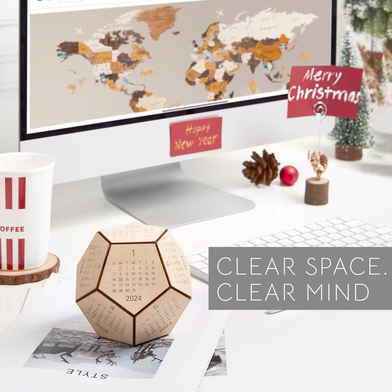 - MINIMAL & WELL-MADE WOOD DESK CALENDAR 2024: This long-lasting and cute calendar is entirely handcrafted from sustainable high-quality wood. Each hexagon piece has a laser- engraving of the months, week numbers and holiday. Then pieces of hexagonal wood are connected toghether by special technique of craft artisans.